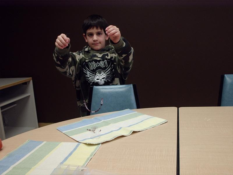 La gentille psycho-éducatrice Marie-Catherine avant l'activité. Début de l'activité
