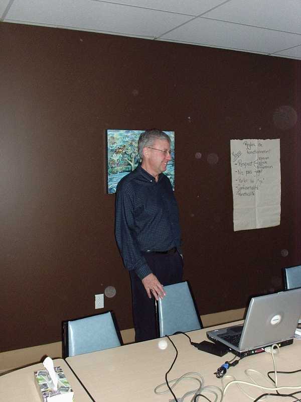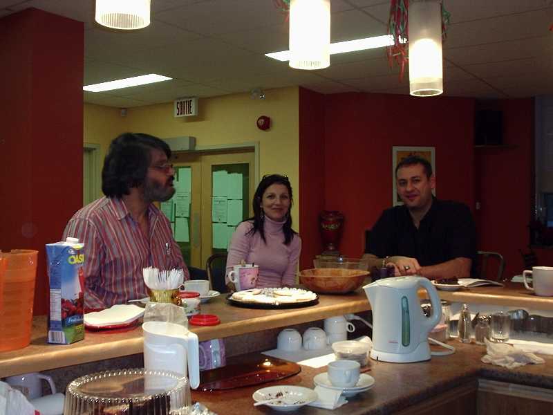 Discussion avec des parents, après la réunion, à notre petit bistro... |